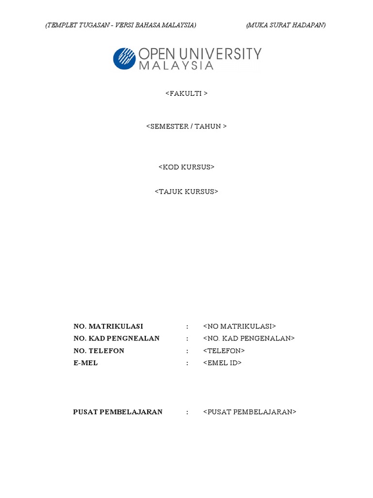 Format Tugasan Oum Versi Bahasa Malaysia Pdf
